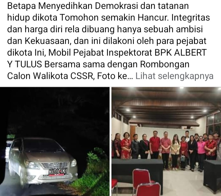Sorotan tajam muncul setelah terkuaknya fakta bahwa kendaraan dinas milik Albert Y Tulus, pejabat Inspektorat BPK Tomohon, didapati turut serta dalam rombongan calon walikota CS/SR. Sebuah potret menyedihkan yang menimbulkan pertanyaan besar tentang netralitas ASN (Aparatur Sipil Negara) yang seharusnya menjaga jarak dari kepentingan politik.