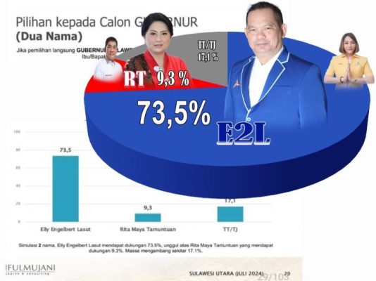 Nama E2L diketahui paling banyak mendapat dukungan dari berbagai elemen masyarakat termasuk para relawan di kota/kabupaten dan seluruh pelosok Sulut. Bahwa pasangan E2L — MEP Elly mendominasi sebagai calon Gubernur yang diinginkan masyarakat untuk memimpin Sulawesi Utara kedepan