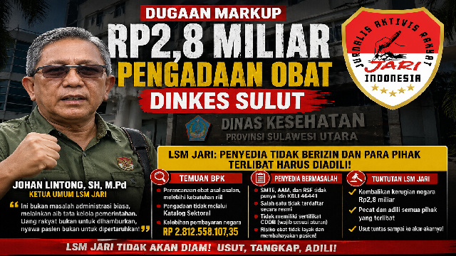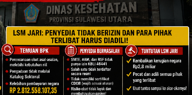 Manado, Kibarindonesia.com – Dugaan skandal serius dalam pengadaan obat di lingkungan Dinas Kesehatan Provinsi Sulawesi Utara mencuat setelah hasil pemeriksaan Badan Pemeriksa Keuangan (BPK) mengungkap potensi pemborosan dan penyimpangan anggaran hingga miliaran rupiah.
