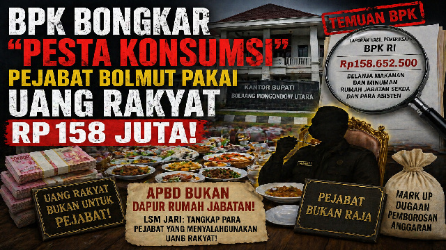 BOLMUT – Diungkap LSM JARI atas Temuan audit Badan Pemeriksa Keuangan mengungkap dugaan praktik “pesta konsumsi” pejabat di lingkungan Pemerintah Kabupaten Bolaang Mongondow Utara yang menggunakan uang rakyat hingga Rp158,6 juta.