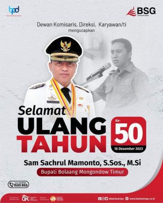 Selamat ulang tahun yang ke-50, Bupati Sam Shacrul Mamonto! Semoga perjalanan kepemimpinan Anda terus berbuah kesuksesan dan kemajuan bagi Bolaangmongondow Timur. 19/12/2023