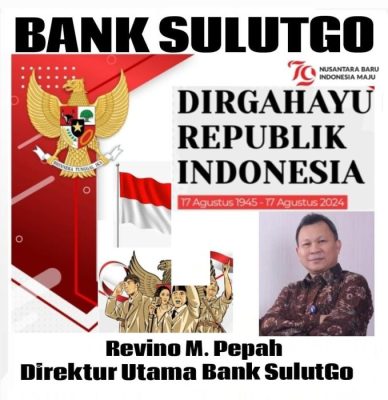 Direktur Utama Bank SulutGo Revino M. Pepah, Tidak ada yang lebih berharga dari kebebasan dan kemerdekaan. Selamat Hari Kemerdekaan Indonesia yang ke-79.