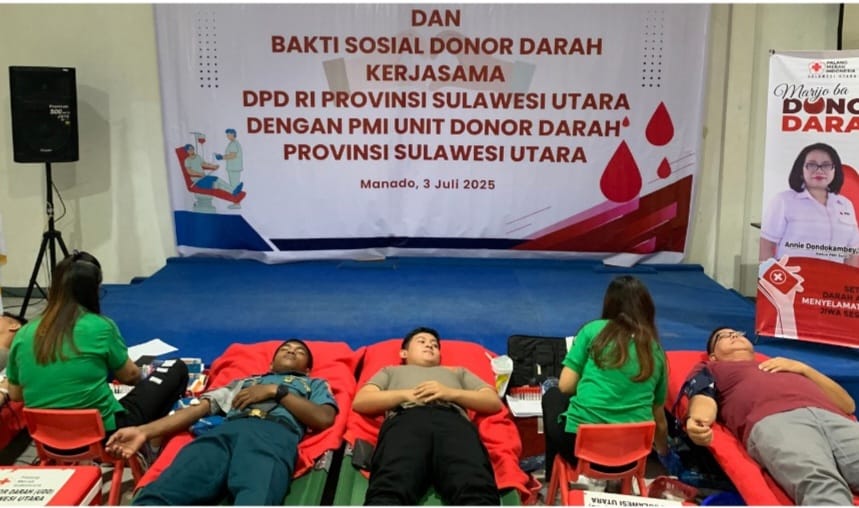Manado – kibarIndonesia.com — Kantor Perwakilan Dewan Perwakilan Daerah Republik Indonesia (DPD RI) Provinsi Sulawesi Utara menggelar kegiatan donor darah sebagai bentuk kepedulian sosial dan upaya nyata dalam membantu masyarakat yang membutuhkan. Kegiatan ini berlangsung sukses dengan partisipasi aktif dari berbagai kalangan dan mendapat sambutan positif dari para peserta.