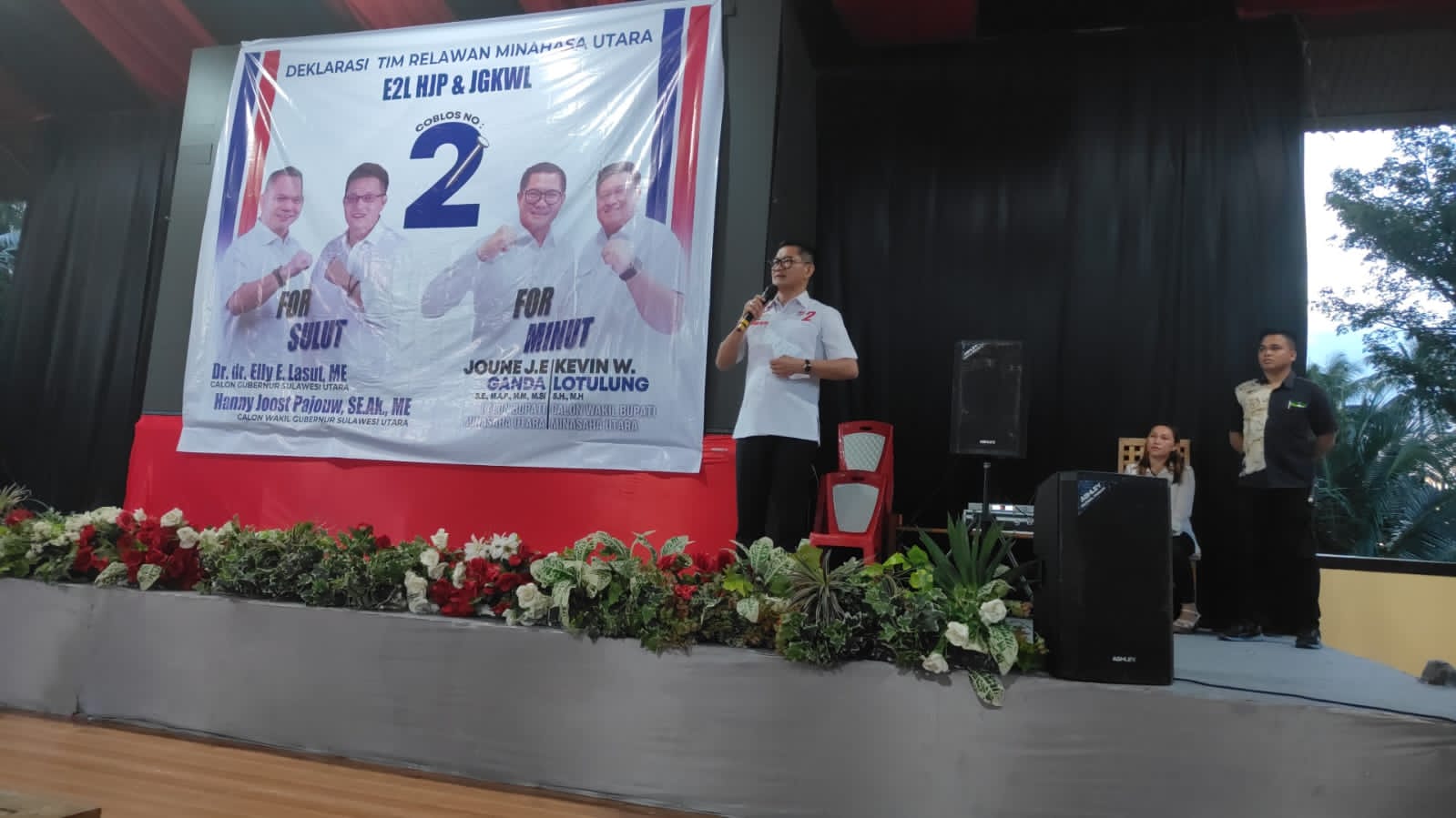 Minahasa Utara – kibarindonesia.com – Relawan Elly Engelbert Lasut (E2L) dan Hanny Joost Pajouw (HJP) Minahasa Utara (Minut) menggelar deklarasi. Dalam kegiatan tersebut, ratusan relawan menyatakan sikap untuk mendukung penuh Joune Ganda – Kevin William Lotulung (JG – KWL) sebagai Bupati Minut.