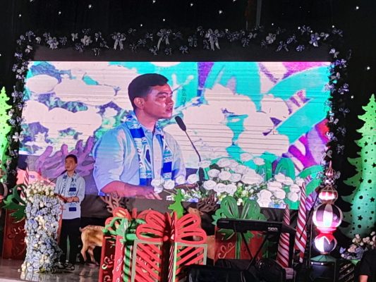 Dalam sambutannya Gibran Rakabuming Raka mengatakan, “Saya mengajak kaum milenial anak muda di Sulut, untuk membangun SDM serta meyiapkan generasi emas, dengan begitu kaum muda harus saling bergandengan tangan demi terwujudnya generasi emas Tahun 2024. Diakhir sambutannya Gibran tidak lupa mengucapkan Selamat Natal 25 desember 2023 dan Selamat Tahun Baru 1 Januari 2024,” ujar Gibran Rakabuming Raka