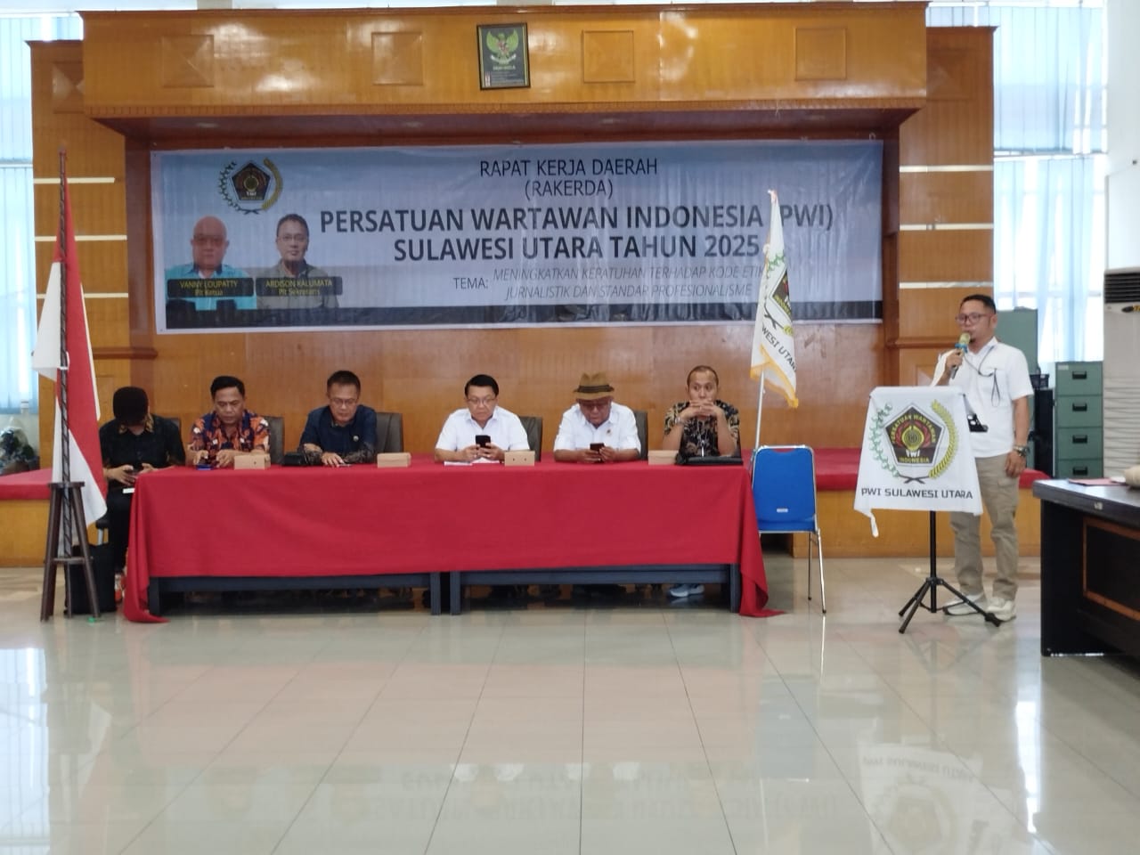 Acara Rakerda PWI Sulut bertempat di Gedung Pertemuan Lantai 5 Kantor Pusat Lama Bank SulutGo, Jalan Sam Ratulangi, Manado. Kegiatan ini dihadiri pengurus PWI dari 14 kabupaten/kota se-Sulawesi Utara serta pengurus tingkat provinsi. Mengusung tema “Meningkatkan Kepatuhan terhadap Kode Etik Jurnalistik dan Standar Profesionalisme”, Rakerda menjadi forum konsolidasi penting bagi penguatan eksistensi dan integritas pers di daerah.