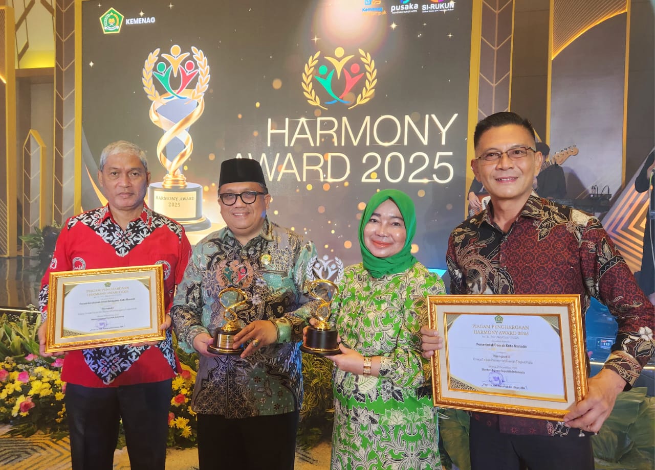 Jakarta –kibarindonesia.com – Kota Manado kembali menegaskan posisinya sebagai salah satu daerah paling harmonis di Indonesia. Hal itu dibuktikan dengan diraihnya dua penghargaan bergengsi pada Malam Penganugerahan Harmony Award 2025 yang digelar di DoubleTree by Hilton Jakarta Kemayoran, Jumat (28/11/2025).