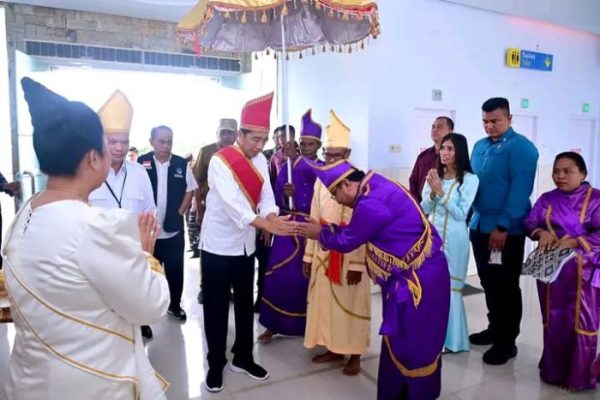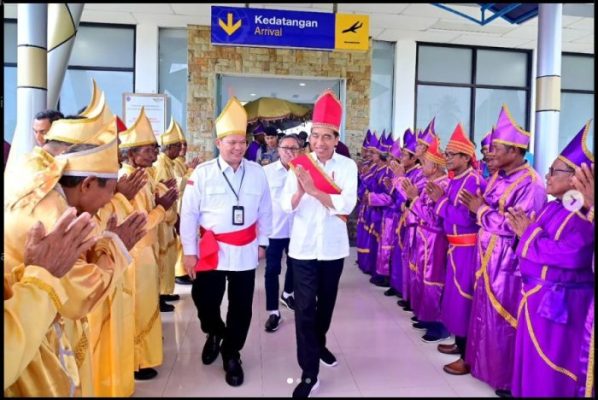Sulawesi Utara – kibarindonesia.com – Presiden Joko Widodo bersama rombongan setelah tiba di Sulut langsung menuju Kabupaten Kepulauan Talaud Provinsi Sulawesi Utara. Setibanya Presiden Joko Widodo di Bandara Melonguane disambut Toko Masyarakat Adat dan saat itu juga beliau diberikan gelar adat Marambe Ambaralla Palunglaa Porodisa.
