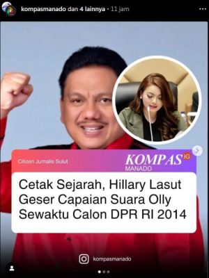 Hal tersebut menjadi sejarah buat Sulut, sebab suara Hillary Brigitta Lasut bisa menggeser suara Olly Dondokambey waktu mencalonkan diri sebagai anggota DPR RI TA 2014 lalu