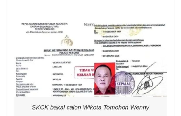 Tomohon— kibarindonesia.com-Tudingan para Buzzer yang disewa untuk menjelekkan Wenny Lumentut (WL) dengan menyebutkan bahwa WL tidak akan memperoleh Surat Keterangan Catatan Kepolisian (SKCK), ternyata omong kosong belaka dan mengarah ke fitnah keji.
