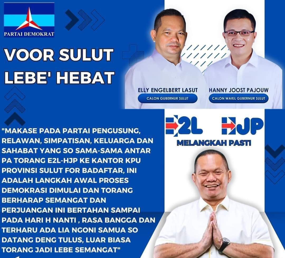 Ketua Relawan E2L Sulut bergerak dibawah pimpinan Ibu Sjannet Lumempouw kepada Media mengatakan, “Jika Tuhan berkenan, keinginan E2L – HJP yang maju dalam Pilgub Sulut koalisi dengan Rakyat untuk mengembangkan Provinsi Sulawesi Utara kearah yang lebih baik, dalam sektor pendidikan, pembangunan infrastruktur berkelanjutan sangat baik