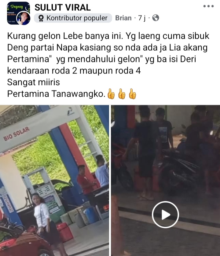 Dari postingan yang beredar luas, masyarakat merasa kecewa karena SPBU yang berlokasi di Desa Tambala Kecamatan Tombariri Kabupaten Minahasa tersebut lebih megedepankan pembeli dengan galon dari pada mobil yang sudah antri berjam jam.