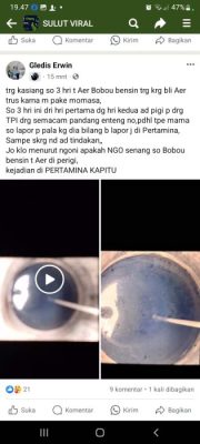 Dalam postingannya, Gledis menyampaikan ketidakpuasannya sebab air yang biasa dipakai untuk masak, sudah 3 hari berbau bensin. Sehingga masyarakat merasa diperlakukan tidak adil karena diduga kegiatan penimbun bensin/ solar menjadi prioritas dipihak SPBU Kapitu. Bahkan, aksi penimbunan tersebut terjadi di malam hari, sehingga sisa sisa minyak terserap tahah dan membuat sumur mereka tercemar