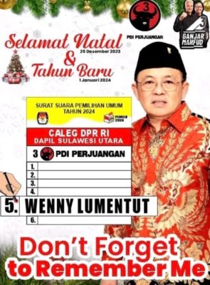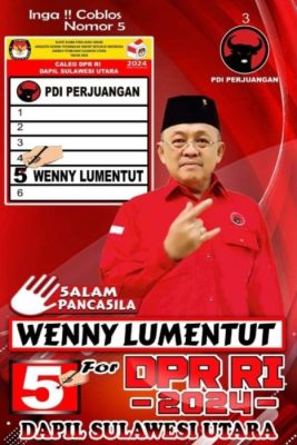 Sulawesi Utara – kibarindonesia.com – Calon Anggota DPR-RI Dapil Sulawesi Utara nomor urut 5 dari Partai Demokrasi Indonesia (PDI) Perjuangan Wenny Lumentut, SE mengucapkan, “Selamat Natal 2023 dan tahun baru 2024, perlu ada koordinasi lintas sektoral, khususnya dalam menjaga kondusifitas dan keamanan di wilayah provinsi Sulawesi Utara,