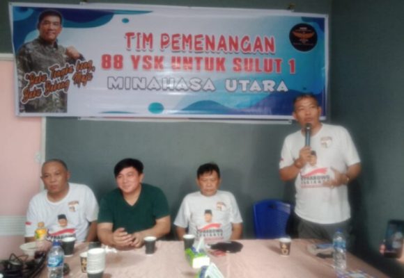 Minahasa Utara – kibarindonesia.com – Mengincar Pilkada Gubernur Sulawesi Utara 2024, Tim Pemenangan 88 YSK untuk Sulut 1 menggelar rapar koordinasi (rakor) di Desa Tatelu Kabupaten Minahasa Utara
